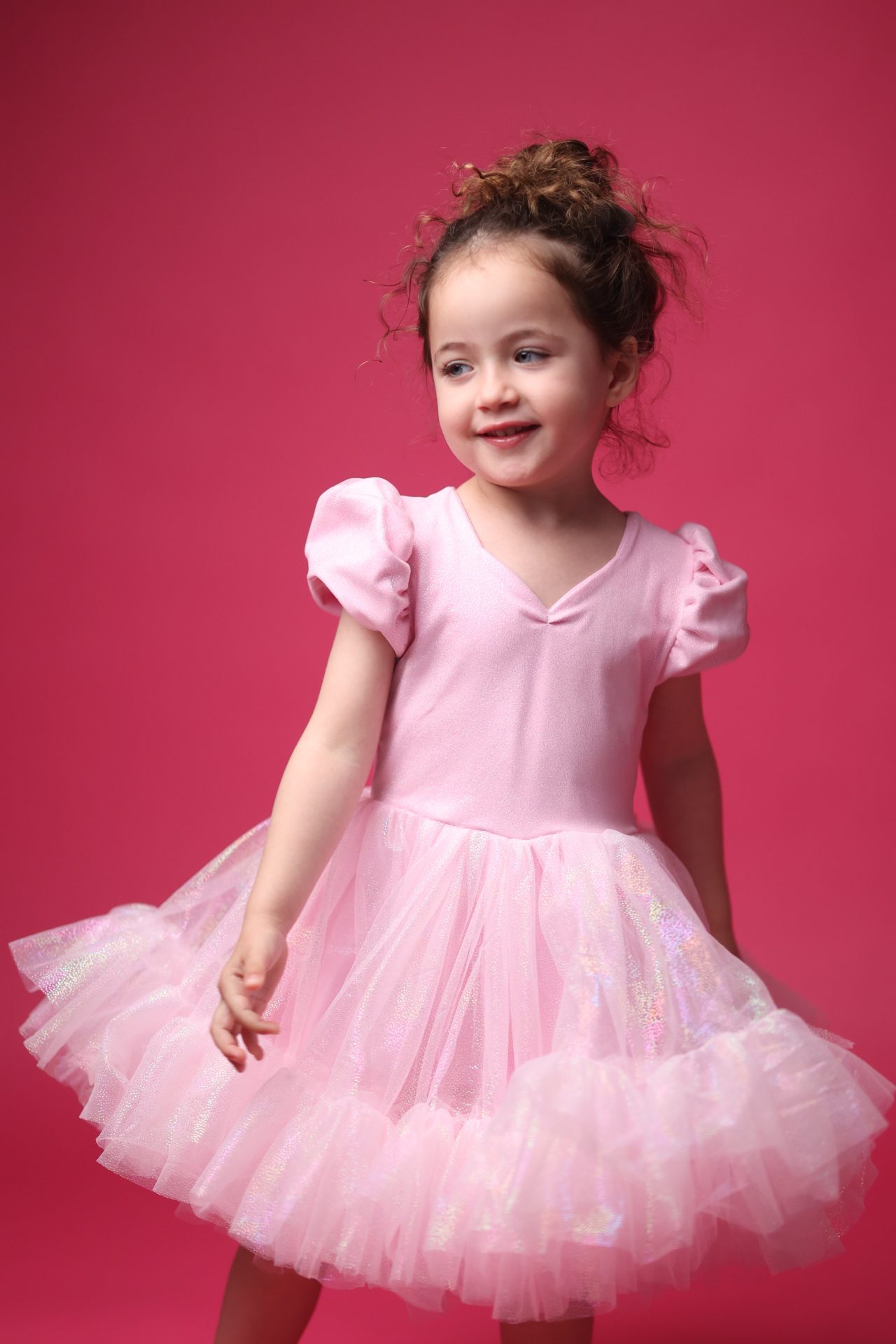 עם שרוולים תפוחים וגזרה אלגנטית שמצטלמת מושלם – זו שמלה שכל ילדה מרגישה בה נסיכה אמיתית.