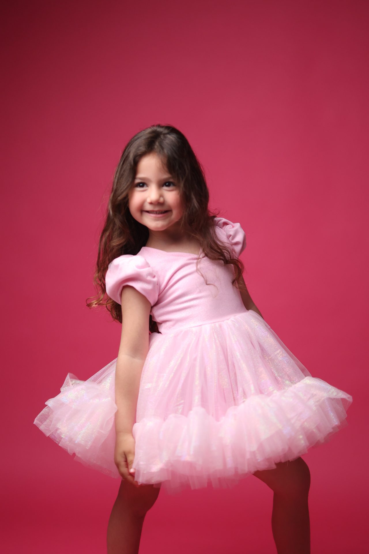 שמלת ערב עדינה ומתוקה בגוון ורוד פודרה רך, משלבת גזרת עליונית עשויה 100% כותנה מלאה ונעימה על הגוף, יחד עם חצאית טול רכה, נפוחה ומנצנצת שיוצרת מראה יוקרתי וקסום.