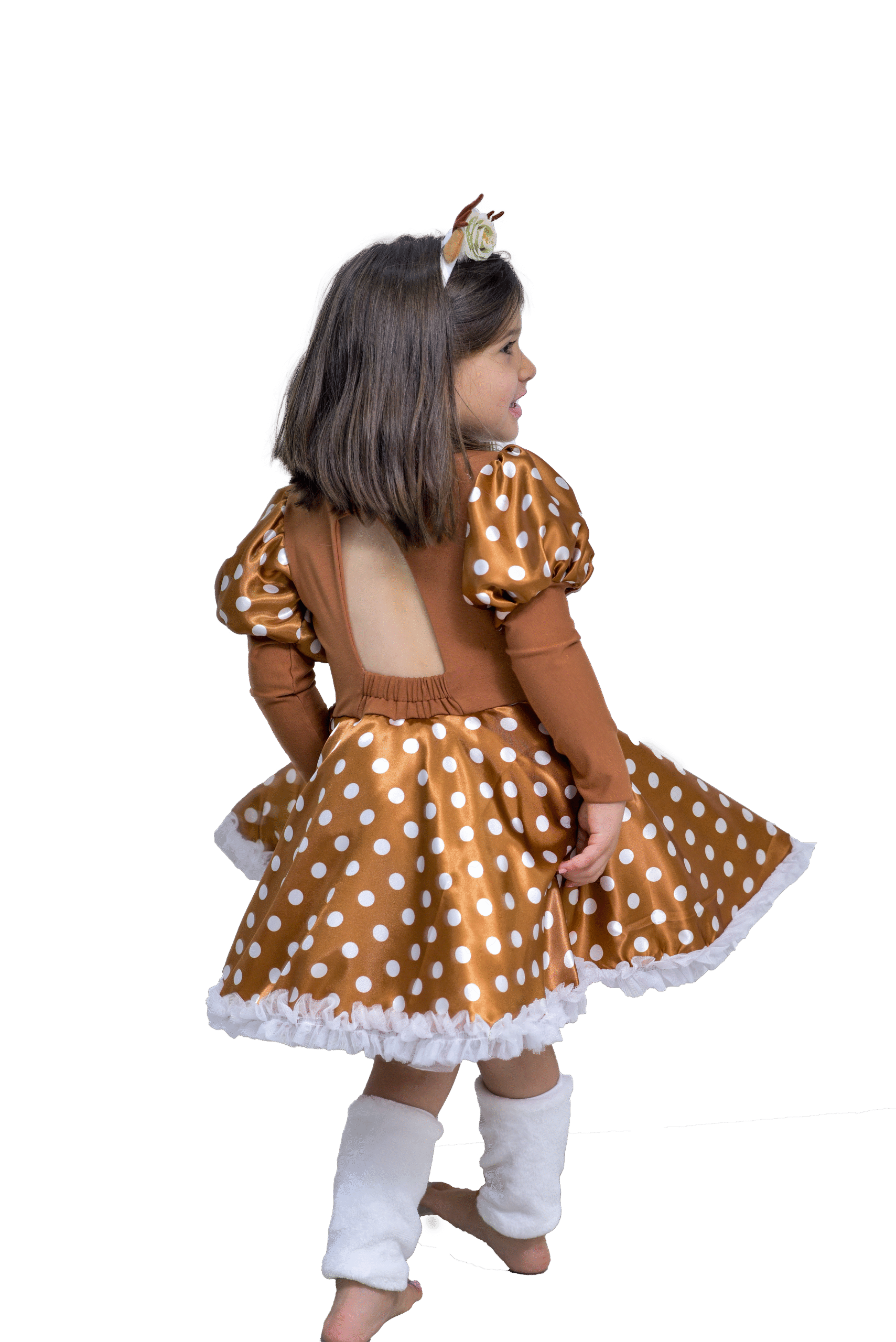 ✅ שמלת צבי במבי מסטאן – שכבה תחתונה 95% כותנה ו-5% אלסטיין, שכבה עליונה מסטאן רך בחום עם נקודות לבנות אופייניות
