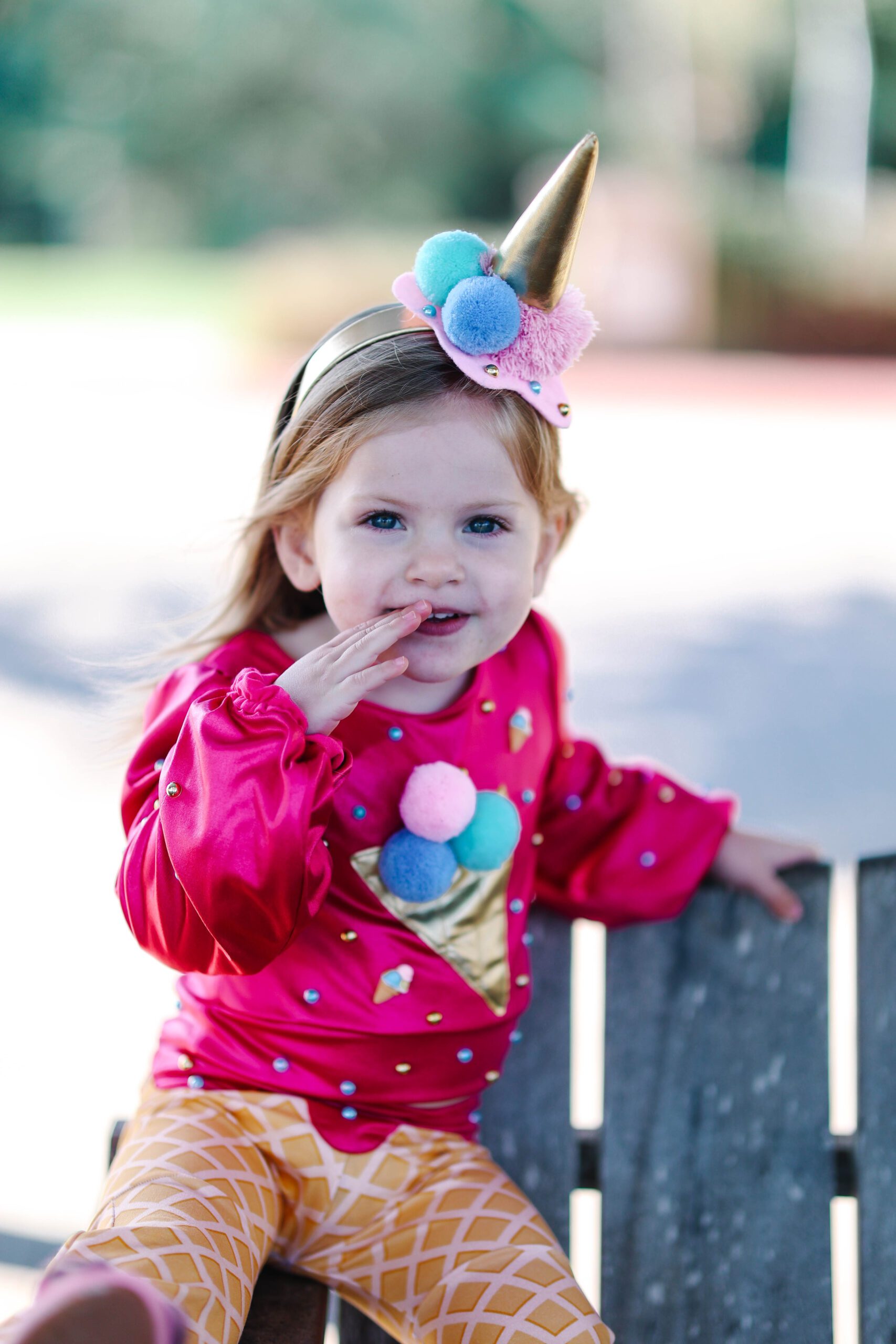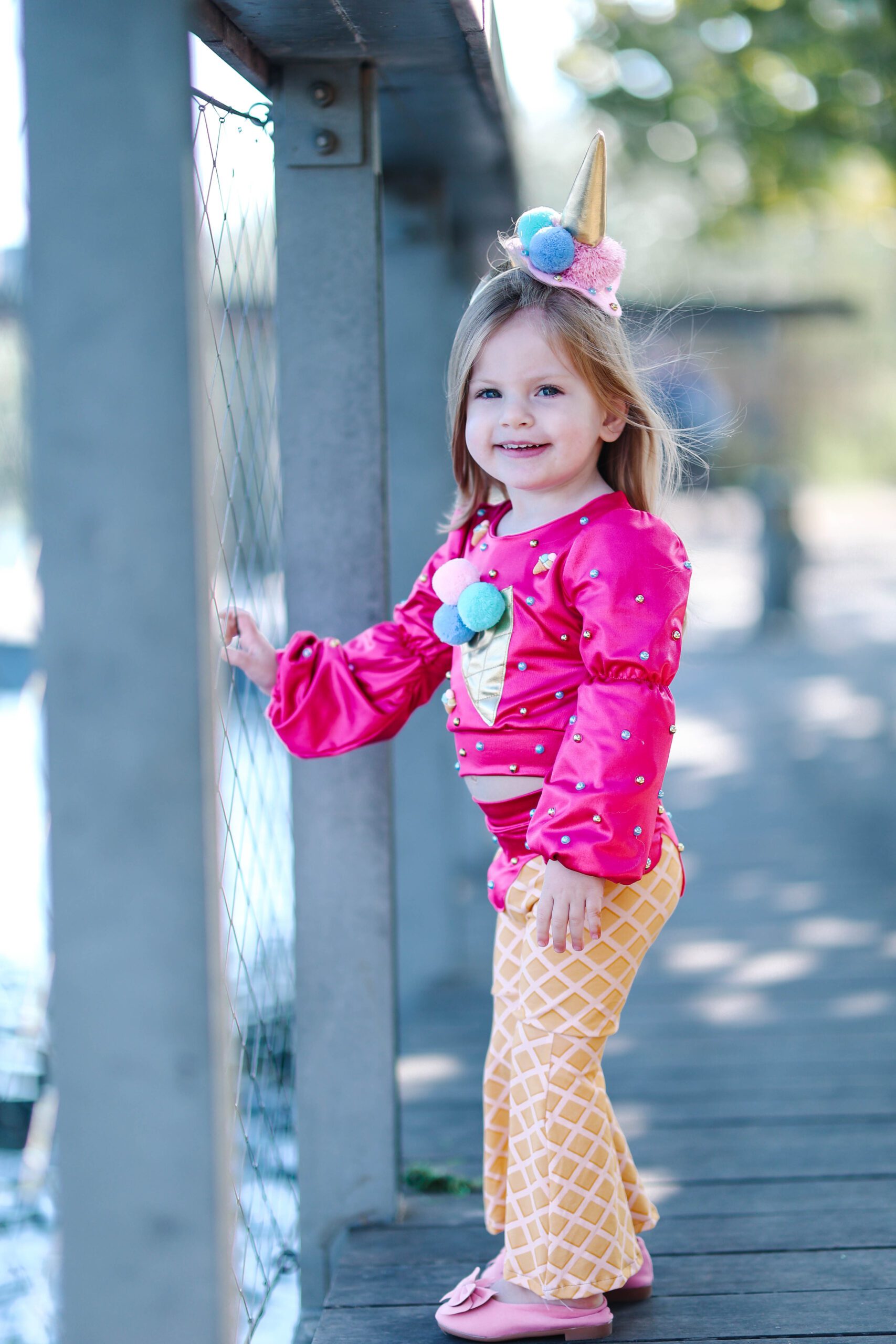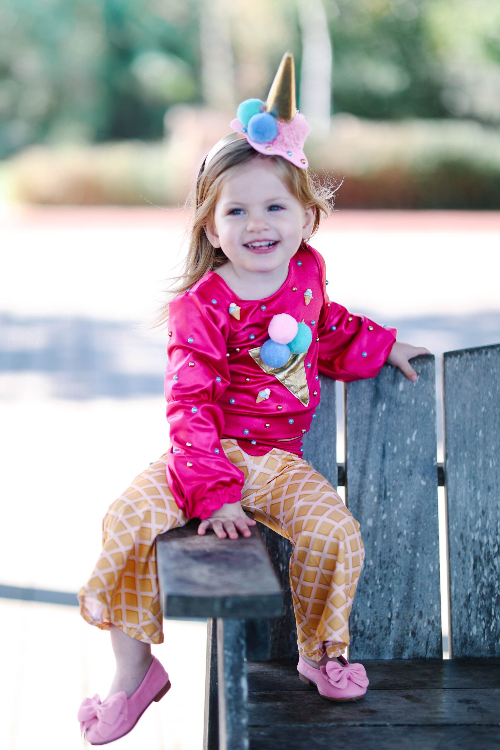 כל פרט בתחפושת יוצר תחושה של מתיקות ושמחה. הוורוד העז, הגלידות הצבעוניות, המכנסיים בדוגמת וופל, והקשת חד קרן המנצנצת – הכל ביחד יוצר את המראה הכי מתוק וייחודי. זו תחפושת שתגרום לחיוכים רחבים, לצחוקים, ולכל רגע להיות מתוק ומיוחד.
