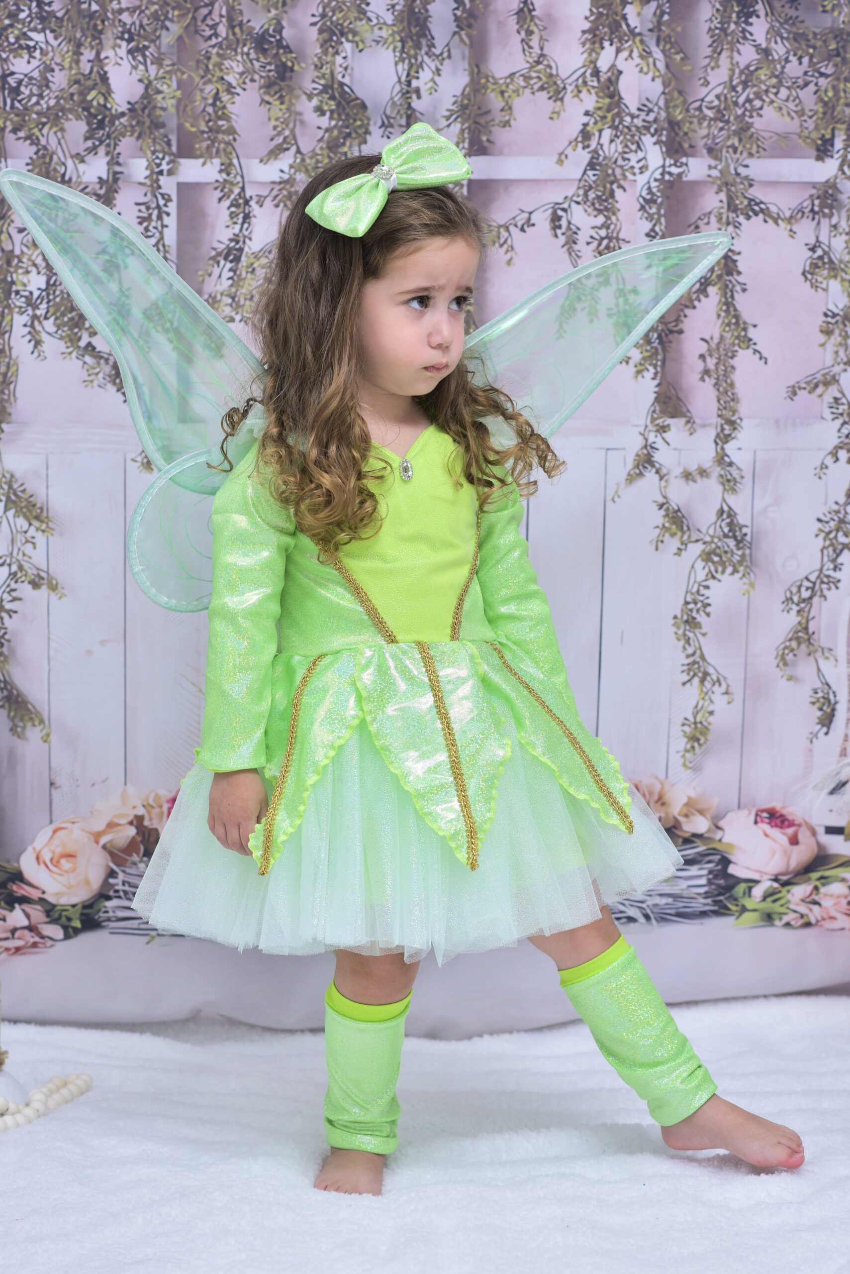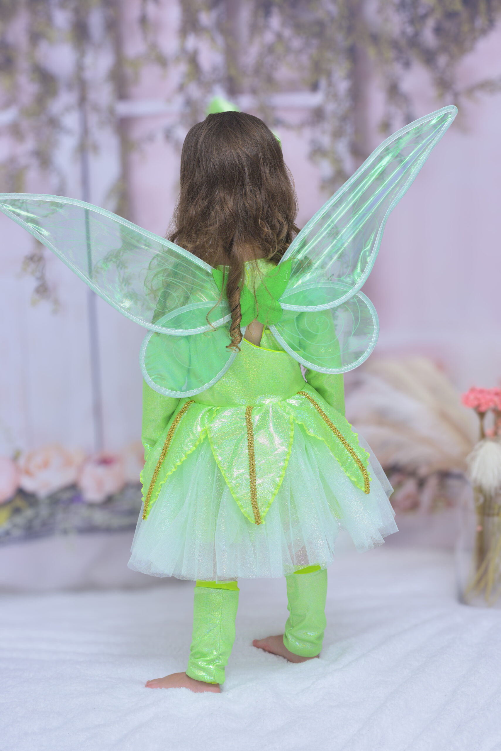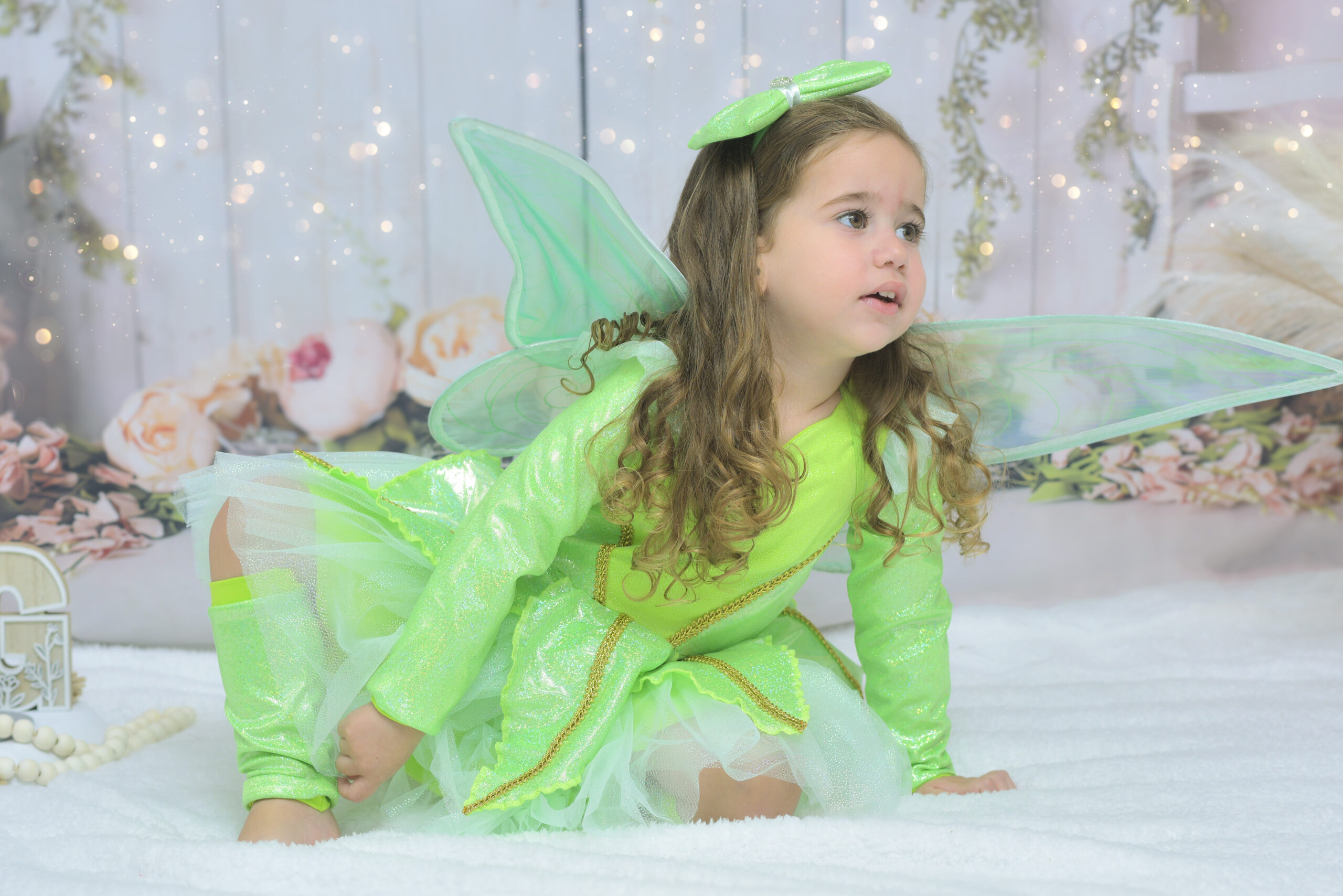 תחפושת טינקרבל לילדות – עיצוב בעבודת יד מבד כותנה רך ונעים. מושלמת לפורים, ימי הולדת וצילומים קסומים.