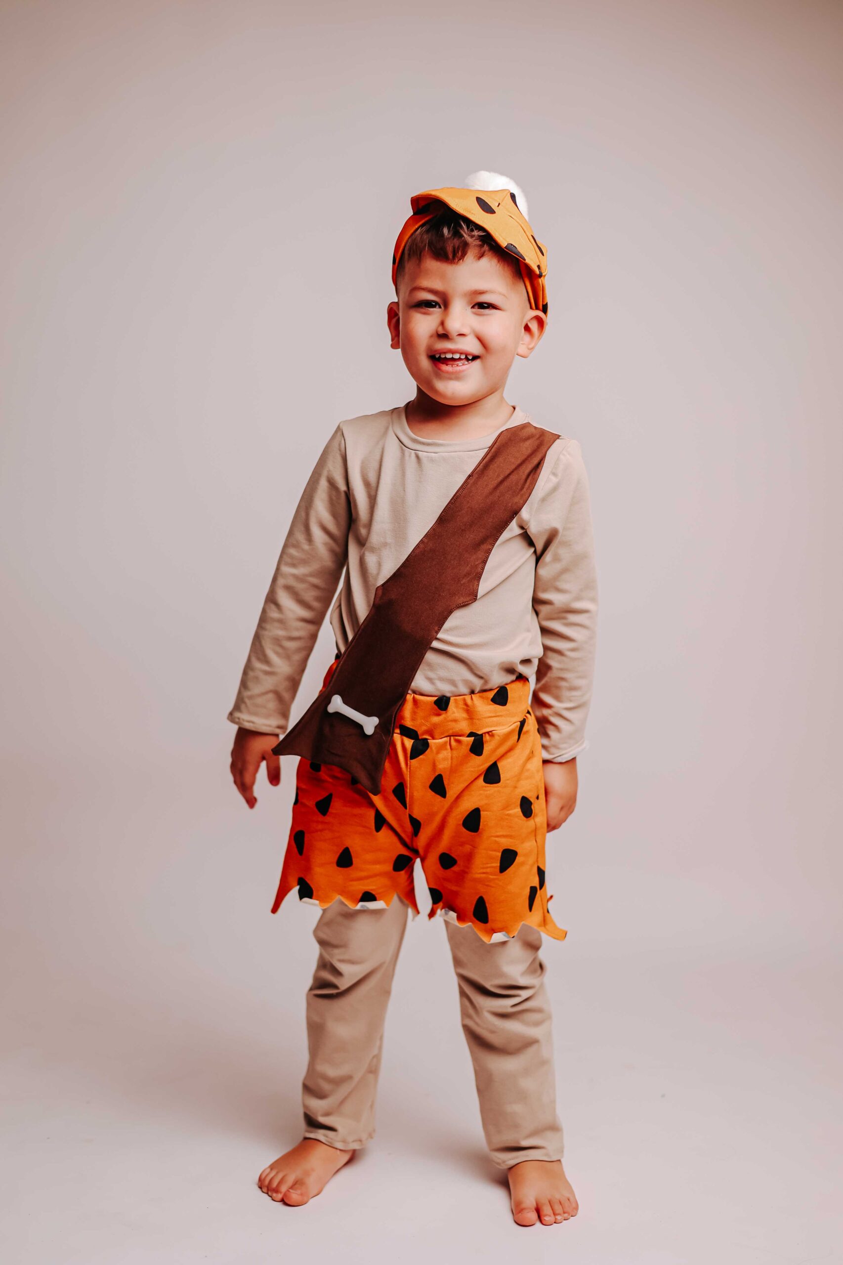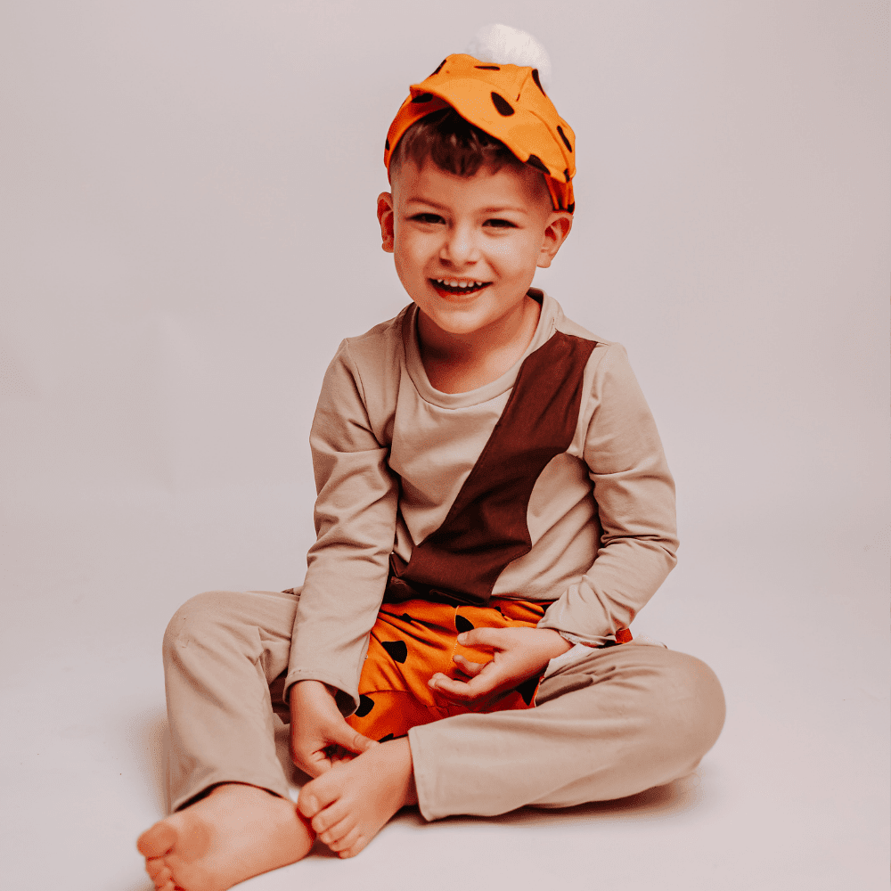התחפושת הזו מביאה את קסם עידן האבן לחיים! השילוב של גוונים טבעיים – בז' וחום עם הכובע הכתום המנוקד יוצר מראה קלאסי וחמוד של לוחם המערה הקטן. החולצה עם האפוד החום, המכנסיים הנוחים והכובע הכתום עם הנקודות השחורות משלימים את הלוק המושלם של הילד הפרהיסטורי האהוב!