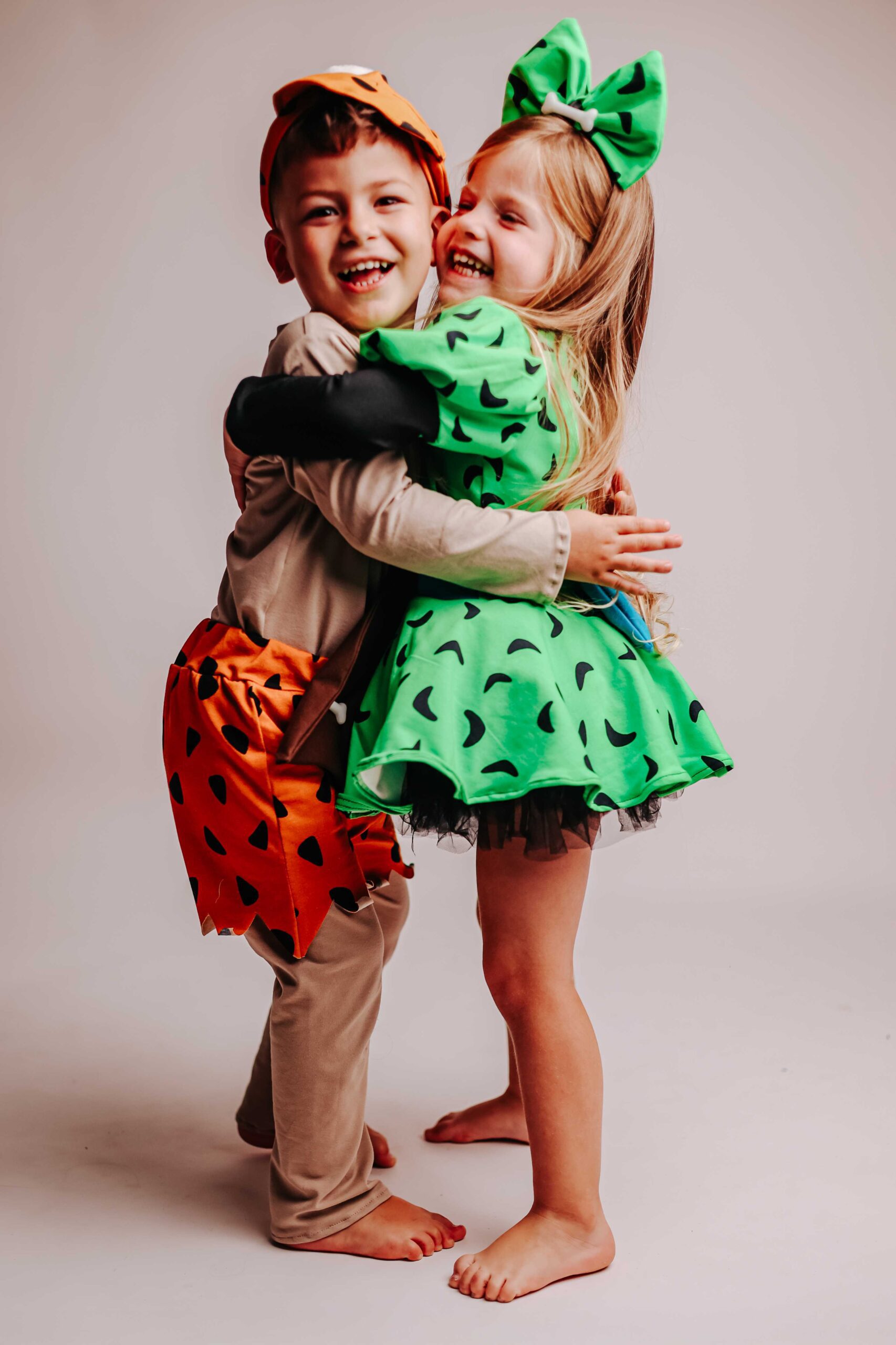 שימי לב: אני מציעה גם תחפושת פלינסטון תואמת לבת כך תוכלי ליצור מראה משפחתי מושלם או להתאים תחפושות לאחים ואחיות בסגנון עידן האבן.